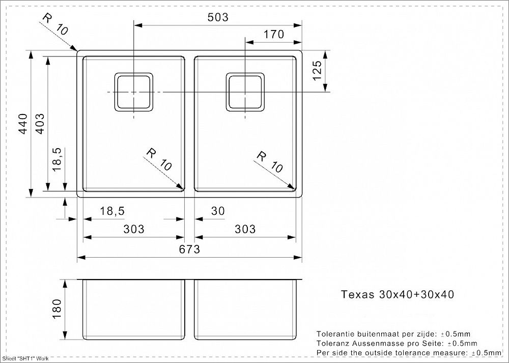 Кухонная мойка Reginox Texas L 30x40+30x40