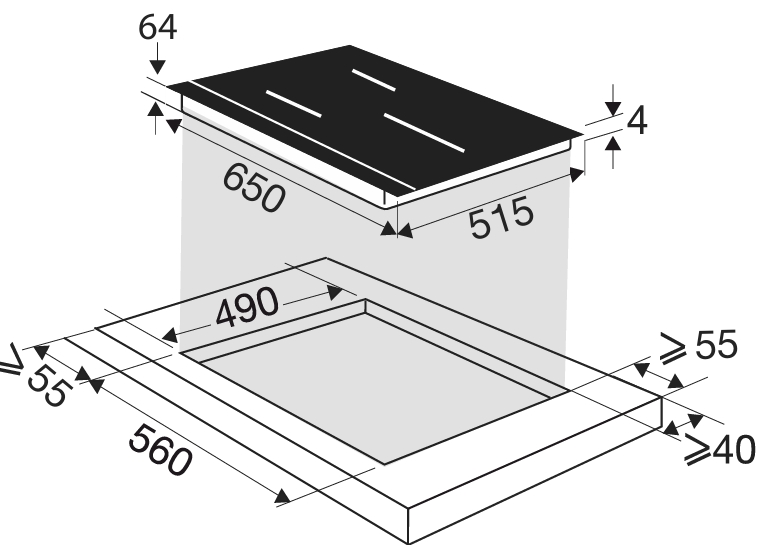 - Индукция - 65 см