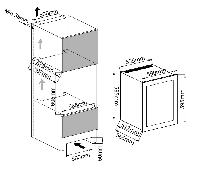 - Встраиваемый в колонну винный холодильник;